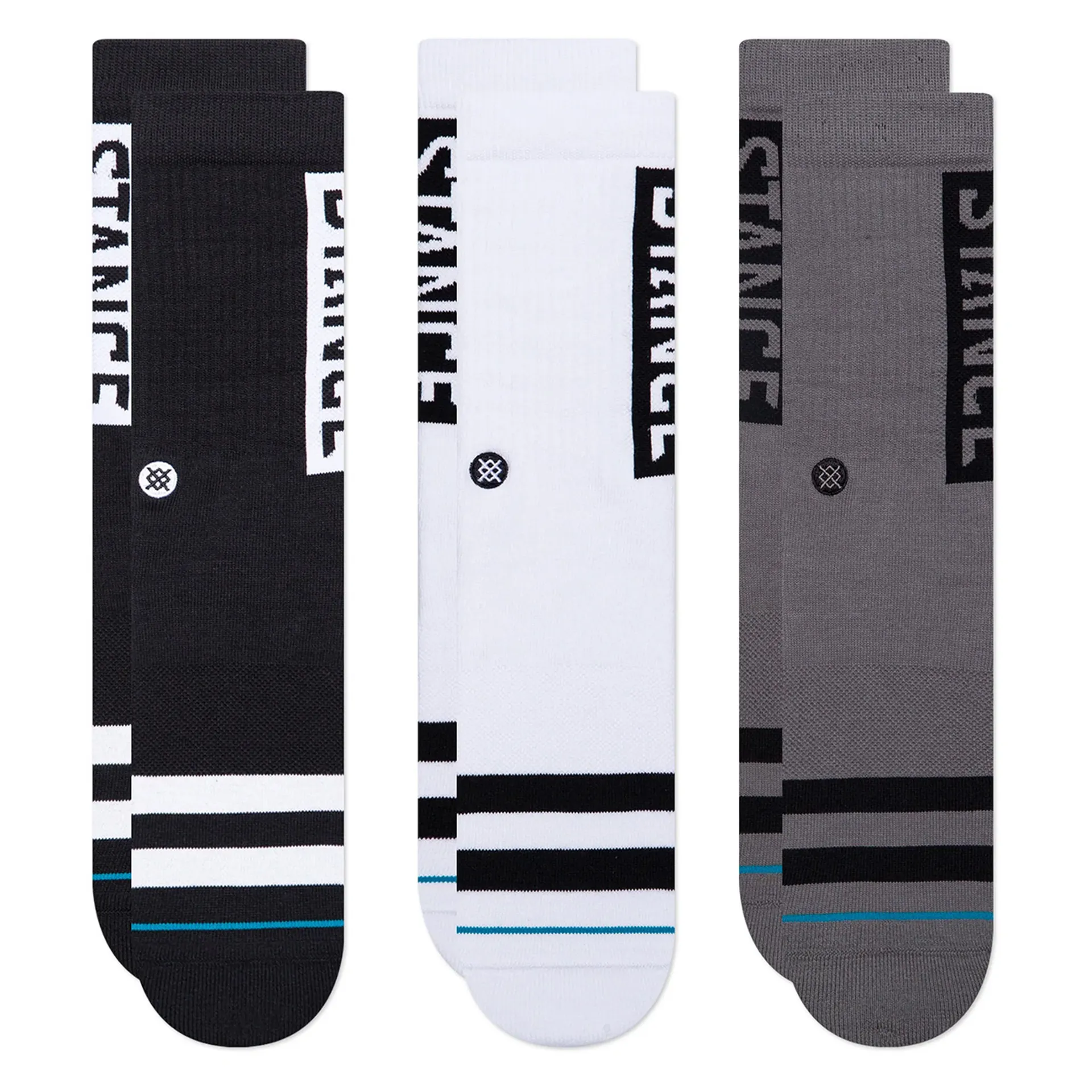 Stance OG Crew Socks 3 Pack in Black/White/Grey