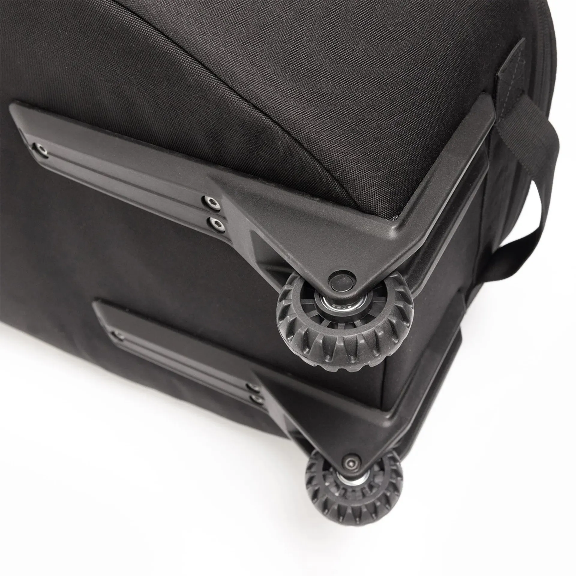 Heavy duty inline wheelie system which is positioned on the end of the cover for easy dragging or standing upright to roll into lifts.