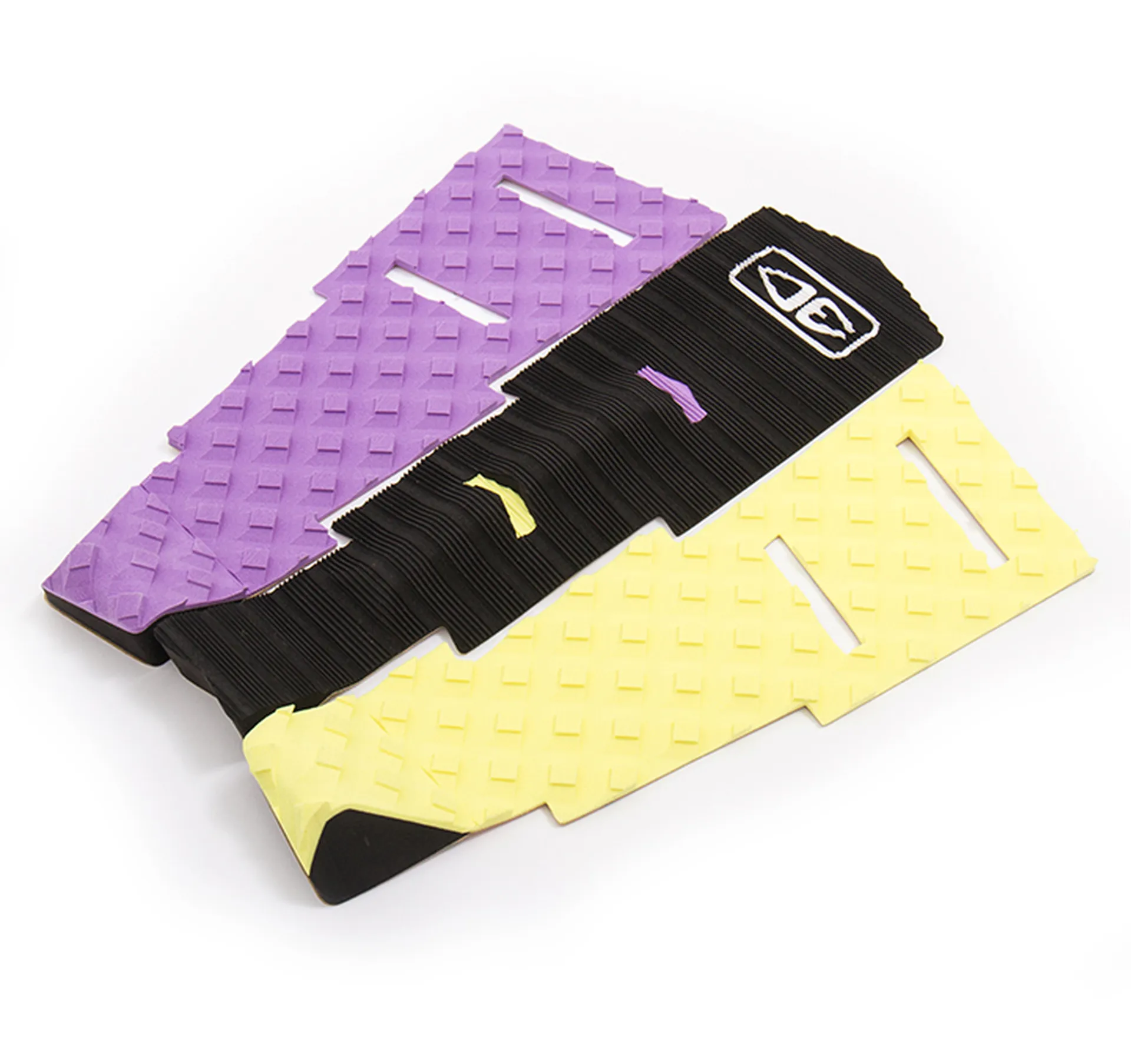 Dakoda's signature tail pad has a combination of multi directional groove patterns. Diamond square on the sides to lock your toes and heel in and brushed corduroy on centre piece with slotted grooves on all three pieces to minimise weight.