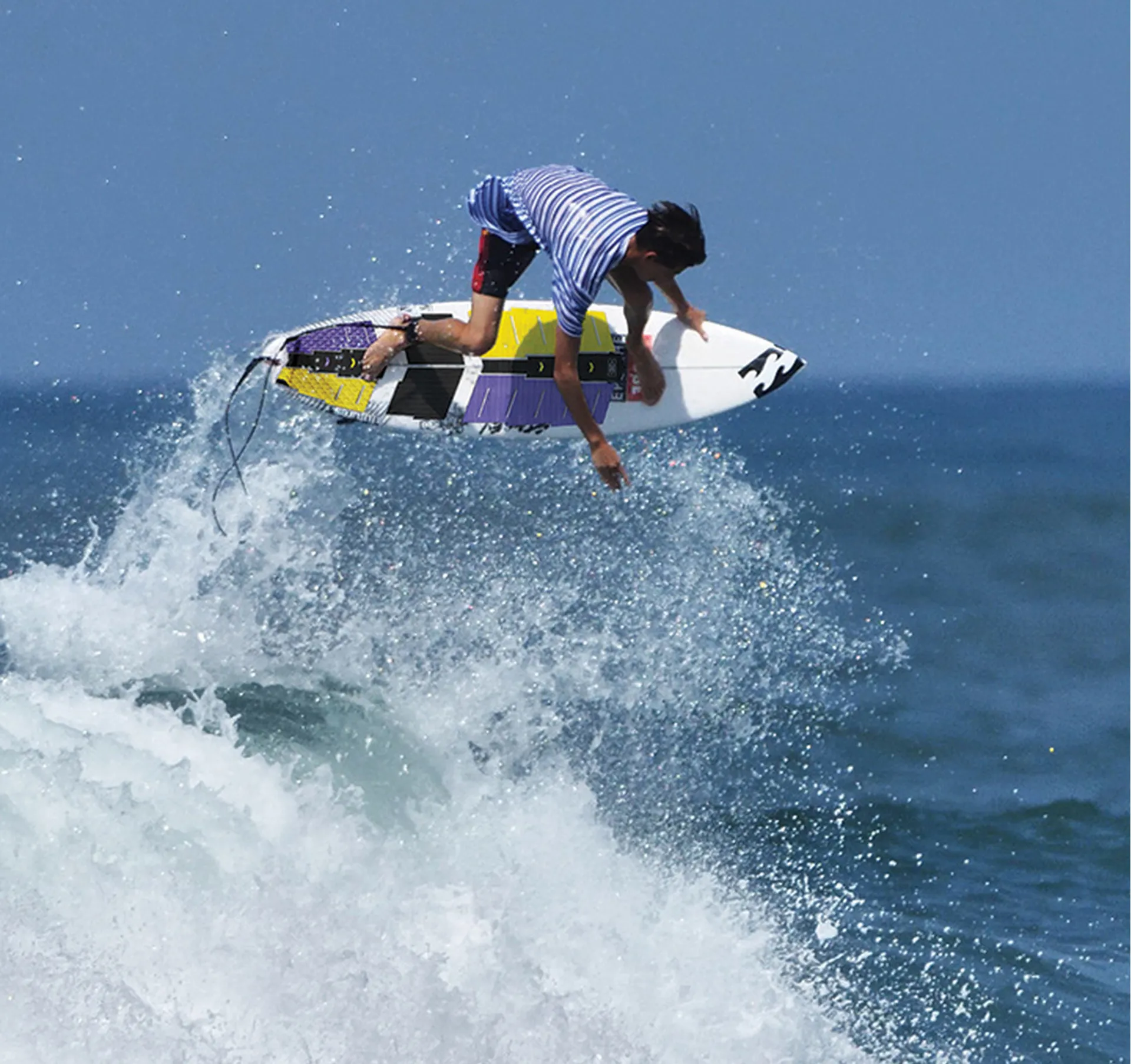 A throw back to the surfing inspired from the 80’s and 90’s when full coverage was the norm. Kodes’s surfing is lightning fast and he spends most of his time above the lip.